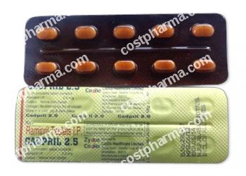 Antihypertension drug (decreasing blood pressure) belongs in a class of drugs called angiotensin converting enzyme (ACE) inhibitors. Suppressing synthesis of angiotensin II it diminishes its vasoconstrictor activity (blood vessel narrowing) and its stimulating influence on secretion (extretion) of aldosteron. The medication facilitates activity of renin in blood plasma and inhibits metabolism (destruction in organism) of badicidin. This medication also decreases total resistance of peripheral blood vessel system. Treatment with ACE inhibitors is particularly beneficial to people with congestive heart failure. The drug is also administered in hypertension, congestive heart failure, prophylactic of sudden death after myocardial infarction.