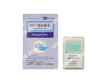 Genegra is produced in a form of mint-flavored strips. Genegra strips dissolve quickly when placed under the tongue. Each strip of Genegra contains 25mg of Sildenafil.