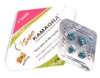 Super Kamagra is a combination of active ingredients which are used to treat erectile dysfunction and premature ejaculation. Thus it helps to maintain erection and prolong the intercourse. Sildenafil and dapoxetine are the main components of this drug. They are characterised by vasodilating and serotonin sustaining effects.